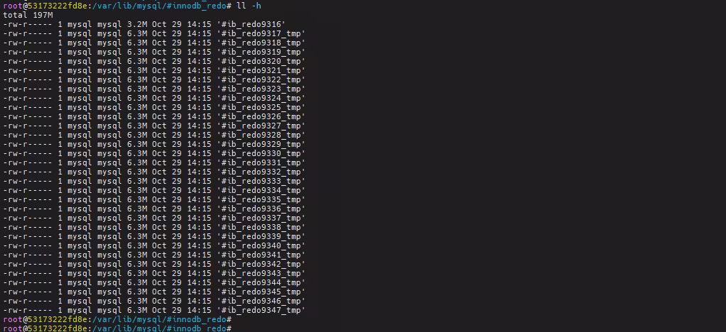 - unused redo 文件,命名为 ib_redo$SEQ_tmp,未被使用的 redo 文件在被使用时,会被重命名为正常文件;