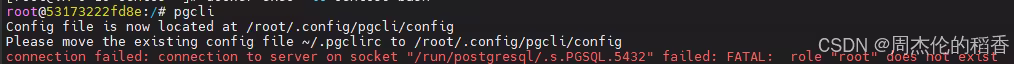 1 | mv /root/.pgclirc /root/.config/pgcli/ |